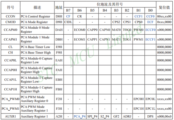 表4-1 STC12C5A60S2系列单片机特殊功能寄存器表