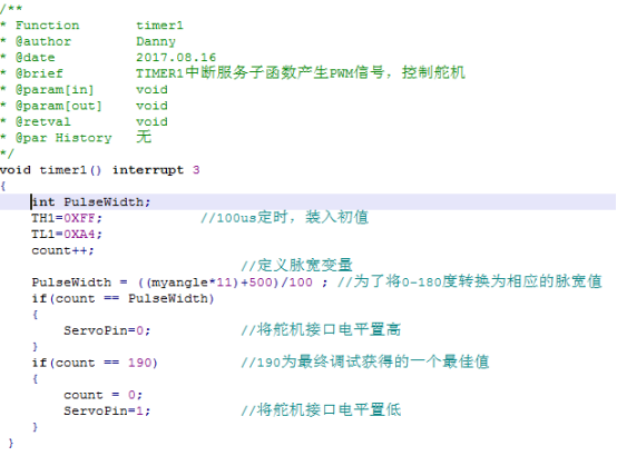 舵机的控制:一般需要一个20ms左右的时基脉冲,该脉冲的高电平部分一般为0.5ms-2.5ms范围内的角度控制脉冲部分。本次实验的采用的舵机是180度伺服,控制关系如下:
