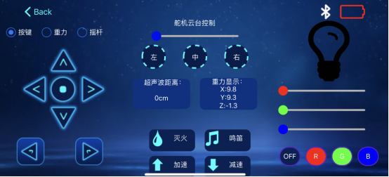 3. 点击“搜索蓝牙”后,会显示“搜索中”,连接成功会显示“断开连接”。当出现YahBoom_BL:-42(数字是变化的,代表蓝牙的信号强度)时,靠近小车即可连接。