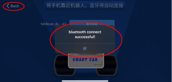 4. 连接成功后会界面会有如下提示,点击左上角【Back】返回主控制界面。