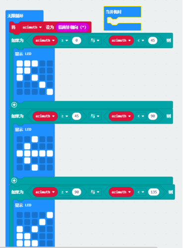 程序下载成功以后,可以往东,西,南,北,东北,西北,东南,西南八个不同的方向,摆(bai)动micro:bit开发板,可以看到无论micro:bit摆动哪个方向,点阵上面的指针都会指向一个方向。