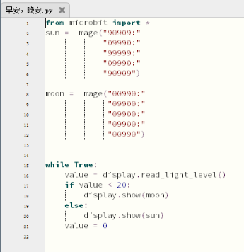 这节课学习使用Python语言编程实现microbit表示早安晚安的小功能。
