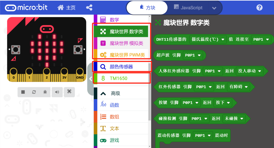 5. 点击【新建项目】创建一个属于自己的项目,便可进入 MakeCode 编程界面, 如下图所示。