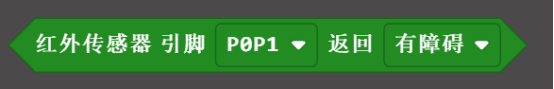 将红外模块连接到P0P1引脚,并返回检测的障碍物状态,一共有 有障碍 和无障碍两个状态可以选,可以点击 有障碍 切换为无障碍。