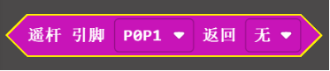 将摇杆模块连接到P0P1引脚,并返回检测的安装状态,一共有 无 、 上 、下 、 左 、 右 五个状态可以选,可以点击 无 进入选择界面,切换为其他的选项。