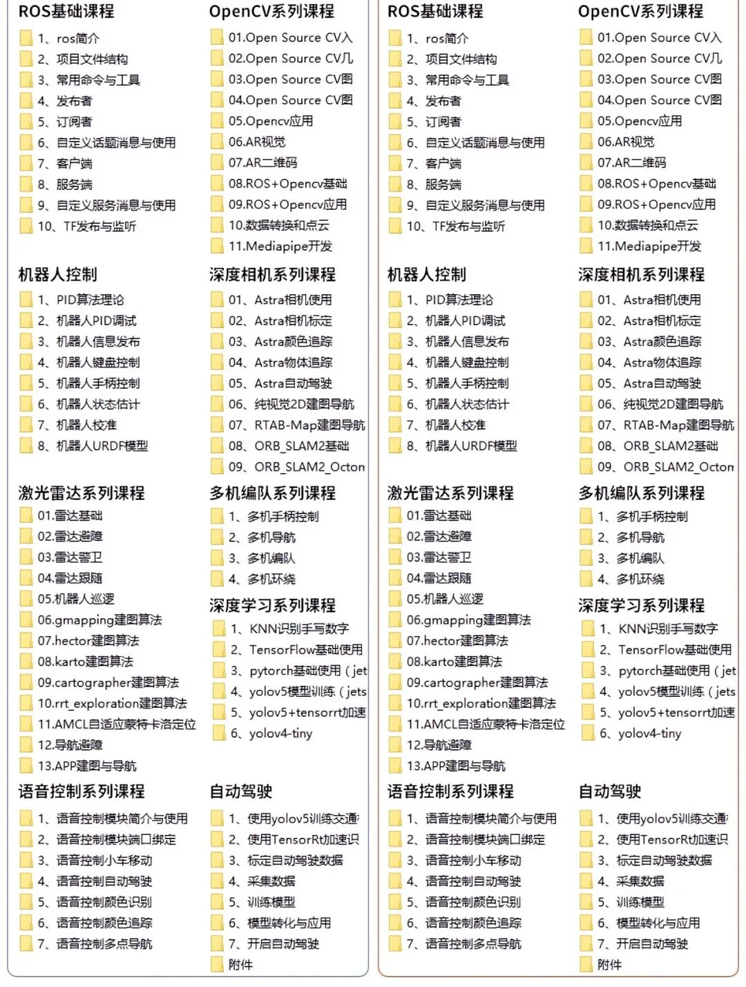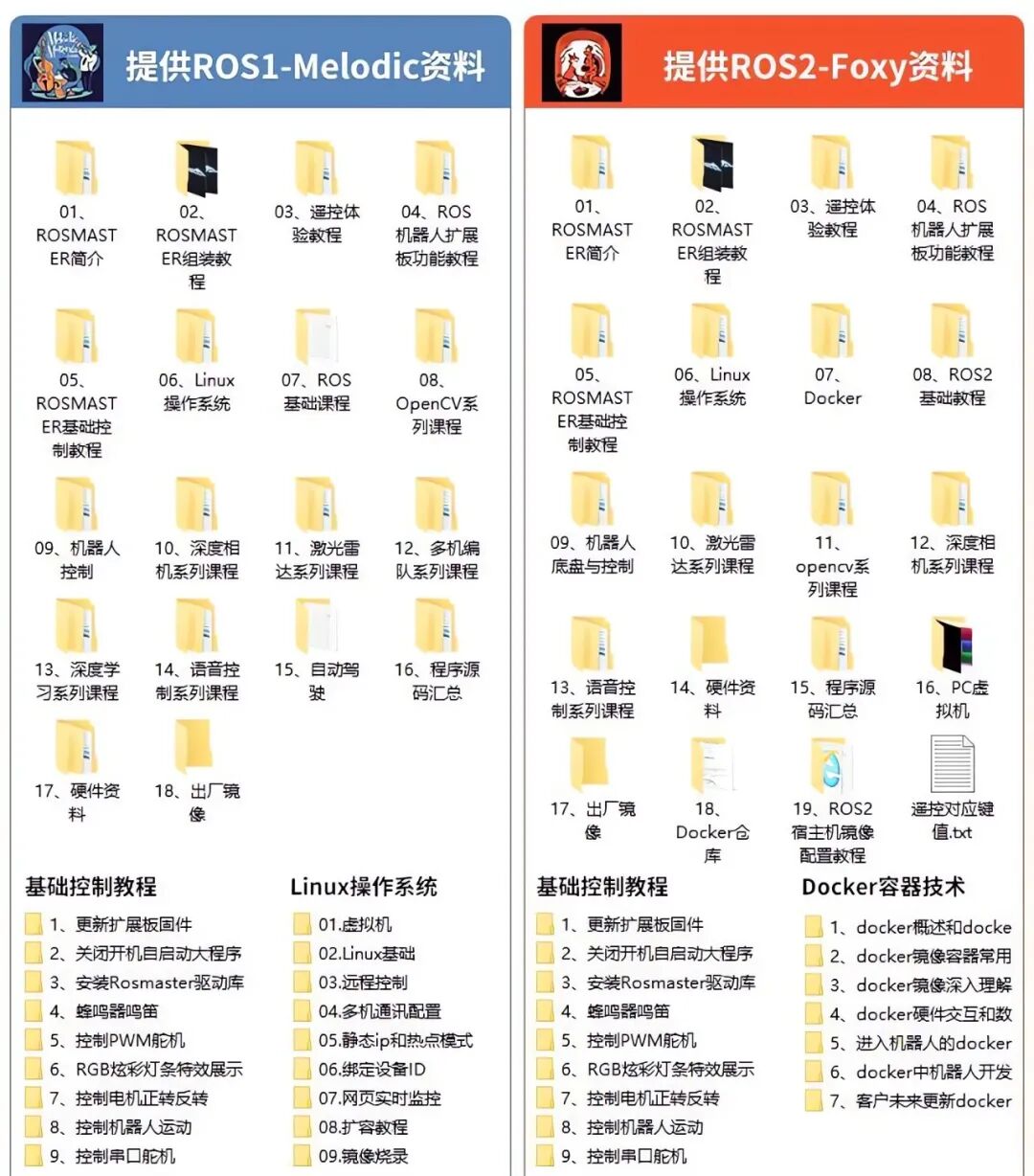 提供ROS1/ROS2两套教程资料,内含完整功能的ROS2系统教程。