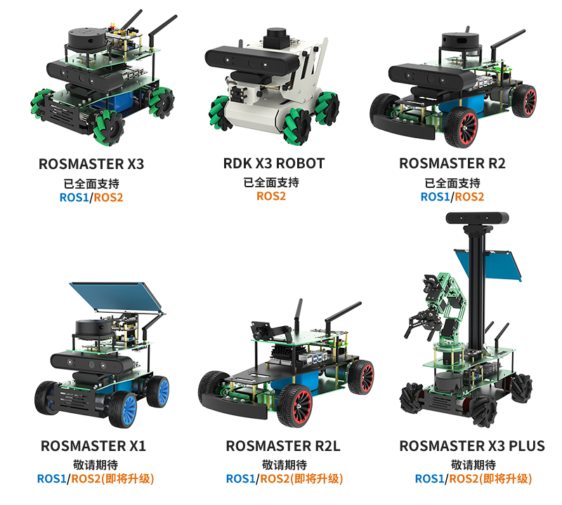 比如ROSMASTER系列,不仅有多款车型结构可以选择,还提供ROS1和ROS2两套教程资料,用户可以根据自身需求和项目要求,选择适合的ROS版本来入门ROS或进行二次开发应用。