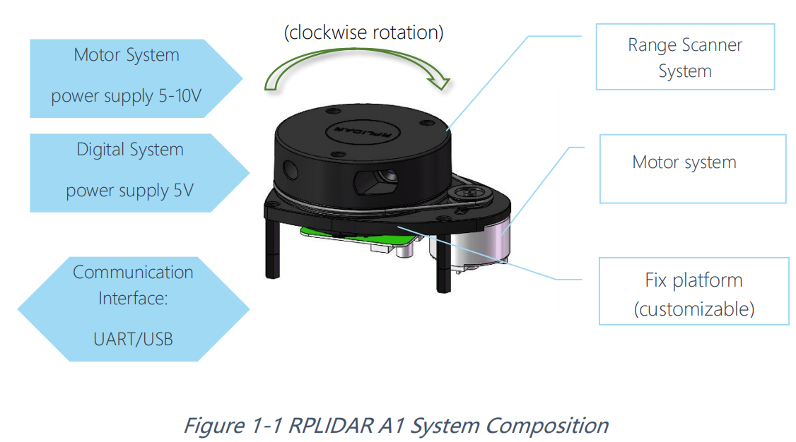以思岚科技的单线激光雷达为例,其主要由激光器、接收器、信号处理单元和旋转机构这4个核心组件构成。