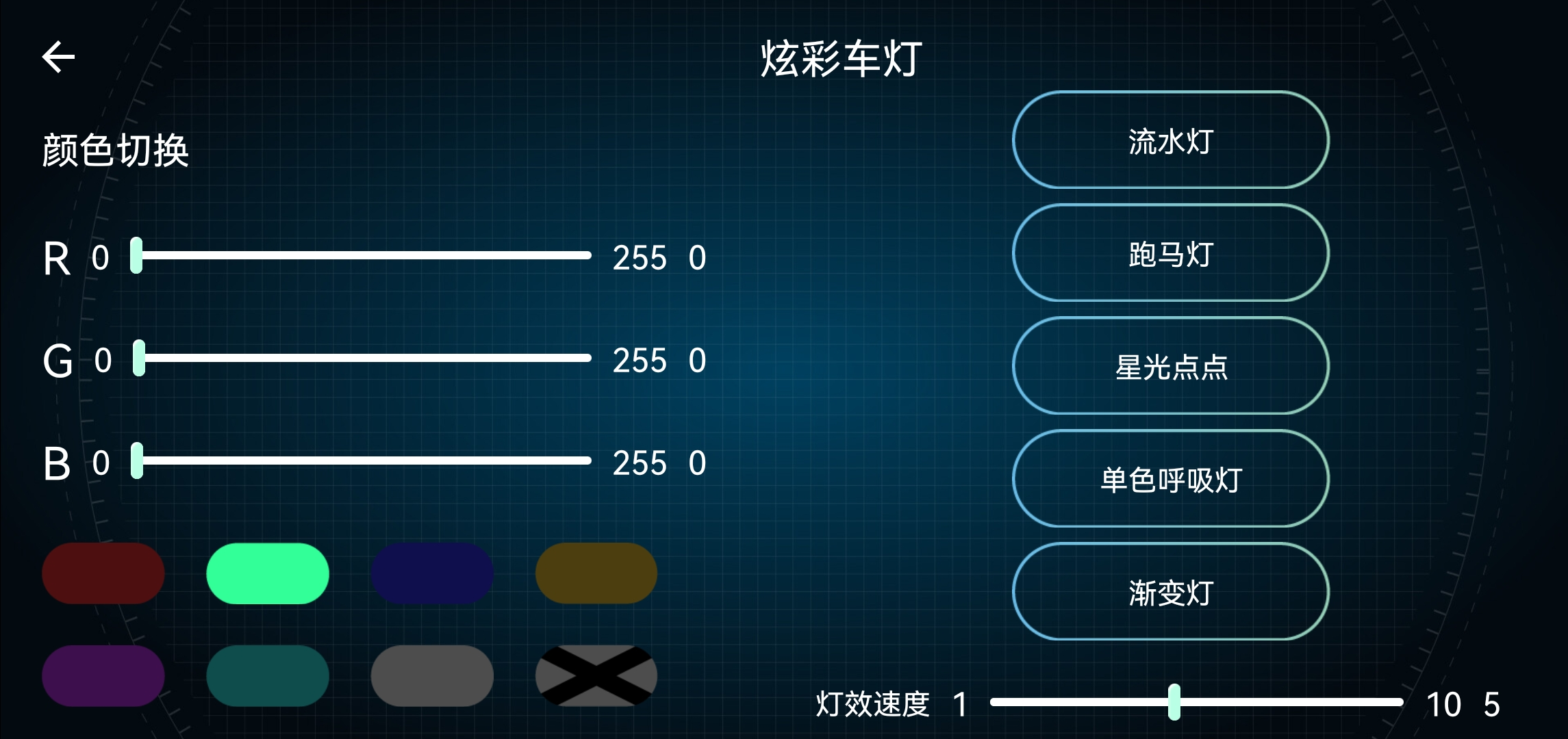在主界面点击【炫彩车灯】图标,会出现以下界面。
