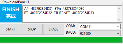 下载完成后,提示蓝色FINISH标识。此时断电重启单片机或者按一下复位键启动程序,关闭烧录工具。