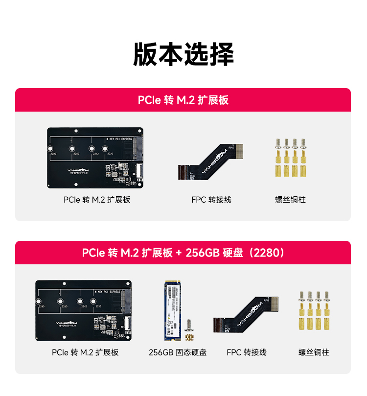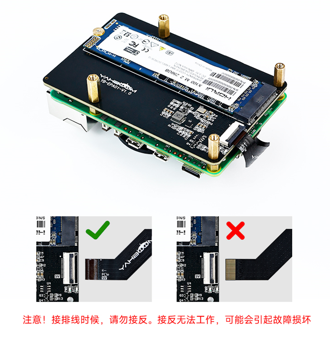 如果要使用树莓派散热风扇,先把散热风扇安装好,再安装PCIE。如果不安装散热风扇,直接看到6.安装M.2固态硬盘到扩展板。