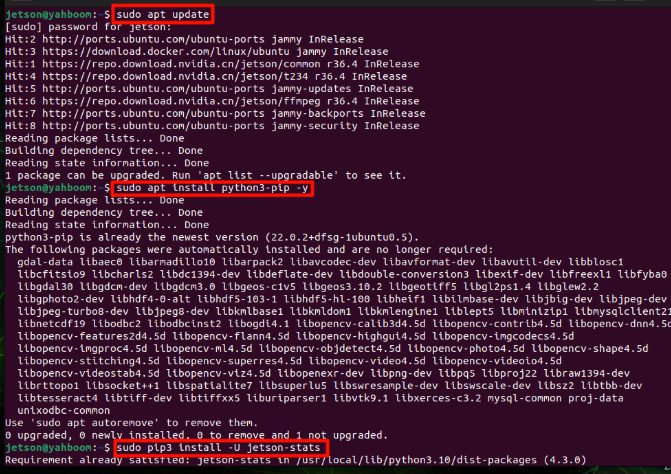 xsudo apt updatesudo apt install python3-pip -ysudo pip3 install -U jetson-stats