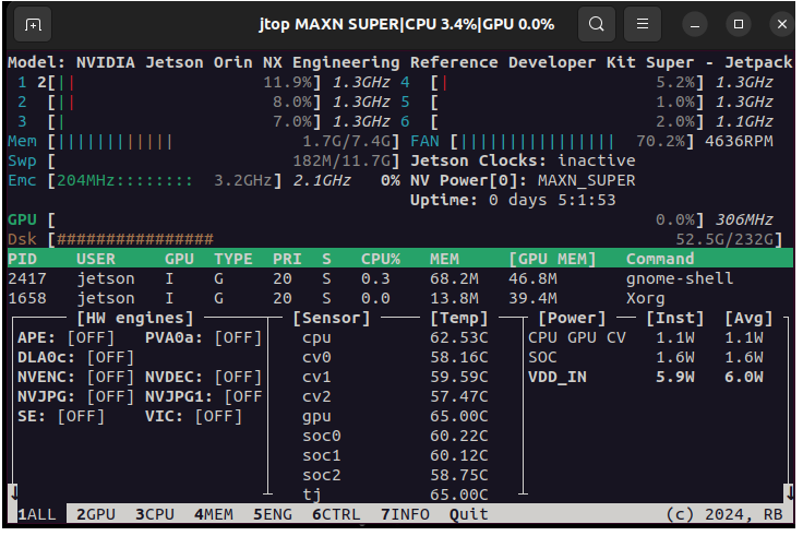 终端输入以下指令启动jtop: