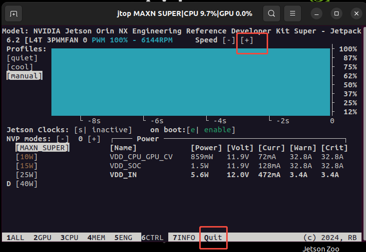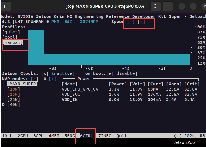 进入jtop配置界面设置风扇为手动模式: