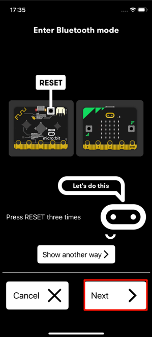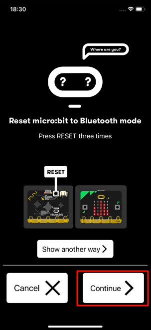 将microbit连接usb线或者接上电池,然后连续按3次后面的RESET按键,让microbit进入蓝牙配对模式