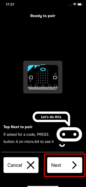 按照microbit显示的图案在手机点击出相同的图案,输入完之后点击next