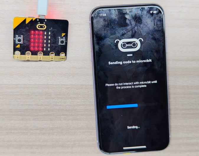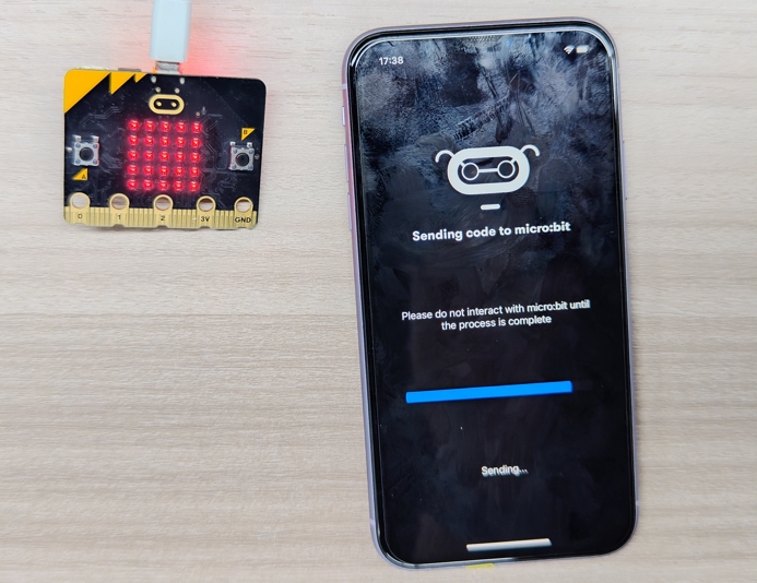 microbit主板显示爱心,App显示发送成功,手机点击ok