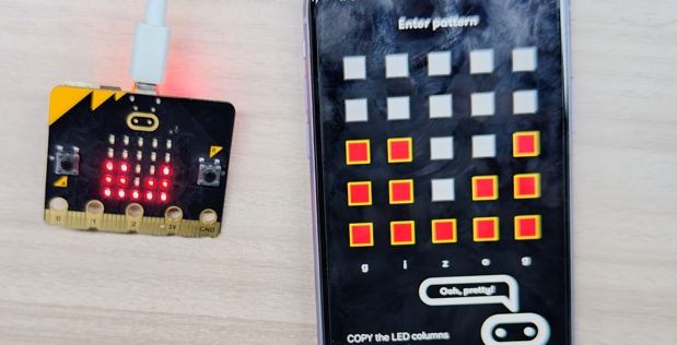 按照microbit显示的图案在手机点击出相同的图案,输入完之后点击next