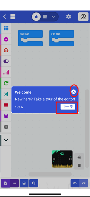 按照microbit显示的图案在手机点击出相同的图案,输入完之后点击next