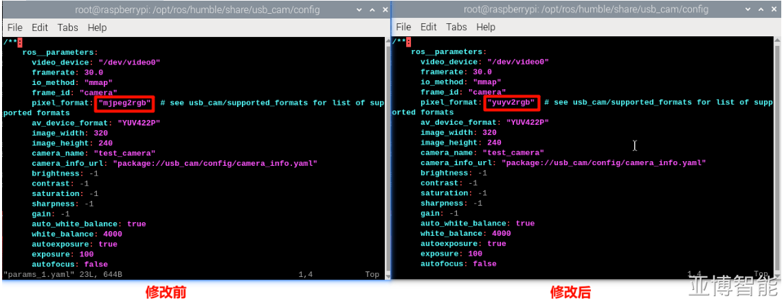 cd /opt/ros/humble/share/usb_cam/config/ vi params_1.yaml