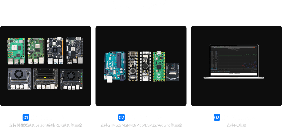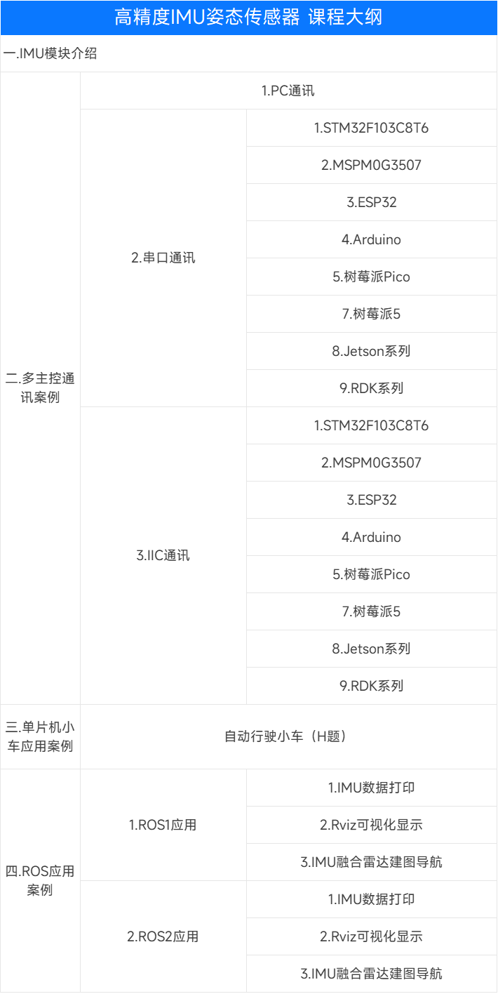 支持STM32/MSPM0/ESP32/Arduino/Pico/树莓派/Jetson系列/RDK系列解算数据,实时打印当前IMU数据与姿态角度。